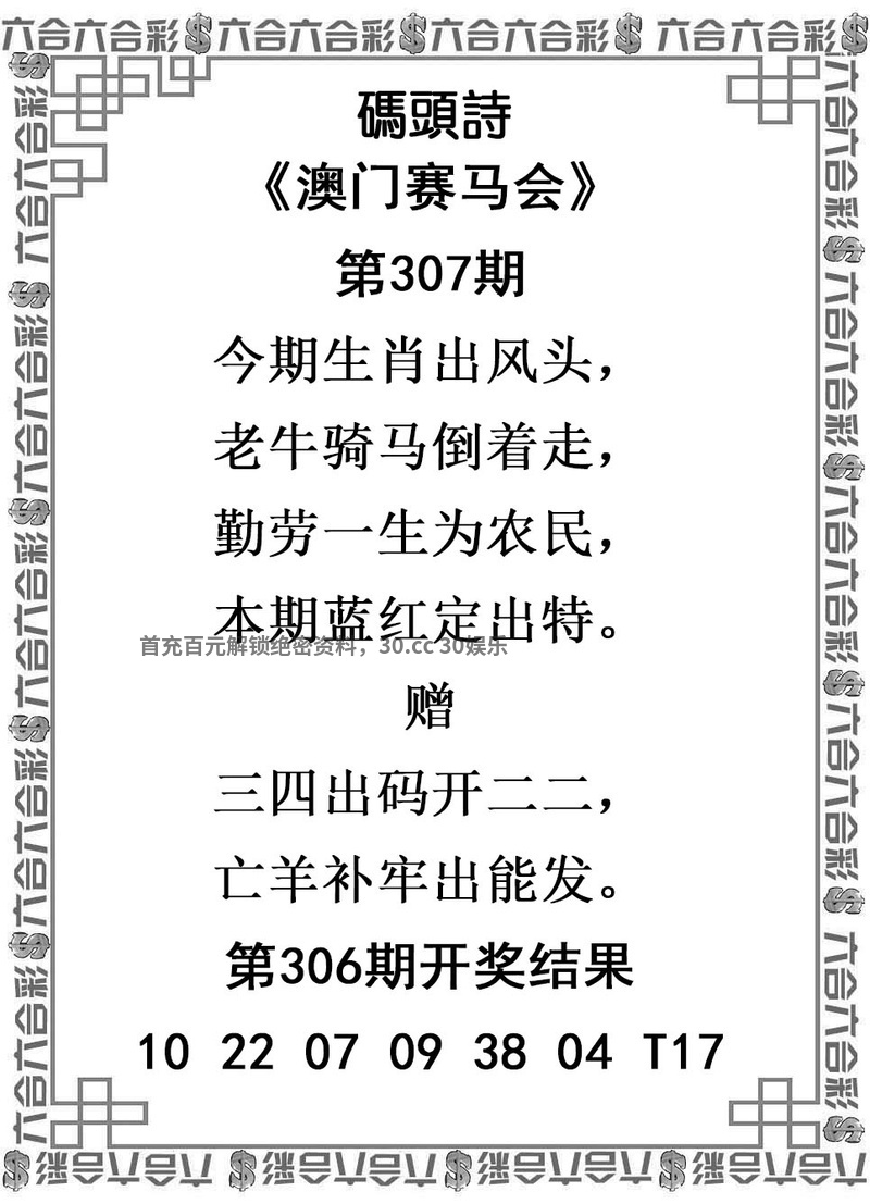 | 307期解析:今期生肖出风头,老牛骑马倒着走,勤劳一生为农民,本期蓝红定出特。 综合生肖:蛇狗羊马鸡鼠牛 必中四肖:蛇狗羊马 |